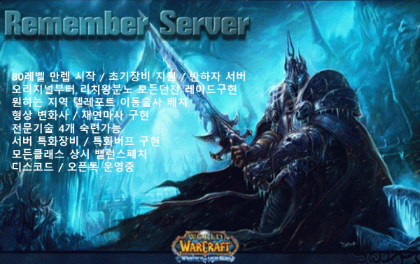 와우3.3.5, 와우 반하자섭, 와우서버, 리멤버 서버, 와우 프리섭, 와우프리서버, 프리섭, 프리서버, 리치왕의 분노